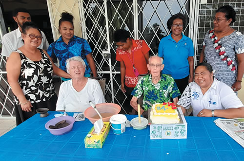 Early in 2021, he moved to Suva for a short break but became locked down here due to Covid. Inter-island travel was forbidden. We celebrated his Diamond Jubilee on Dec 20, 2021. His health had become precarious with a touch of pneumonia, and we were extremely worried for him. With the help of a dedicated full-time caregiver, Maria Turagaulu, he regained his health and is now able to travel to Ireland.