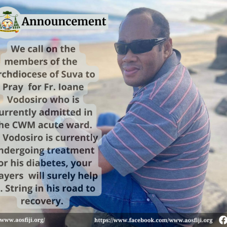 We call on the members of the Archdiocese of Suva to Pray for Fr. Ioane Vodosiro who is currently admitted in the CWM acute ward. Fr. Vodosiro is currently undergoing treatment for his diabetes, your prayers will surely help ... Source URL https://www.columban.org.fj/media-and-publications/articles/features/2022/praye…
